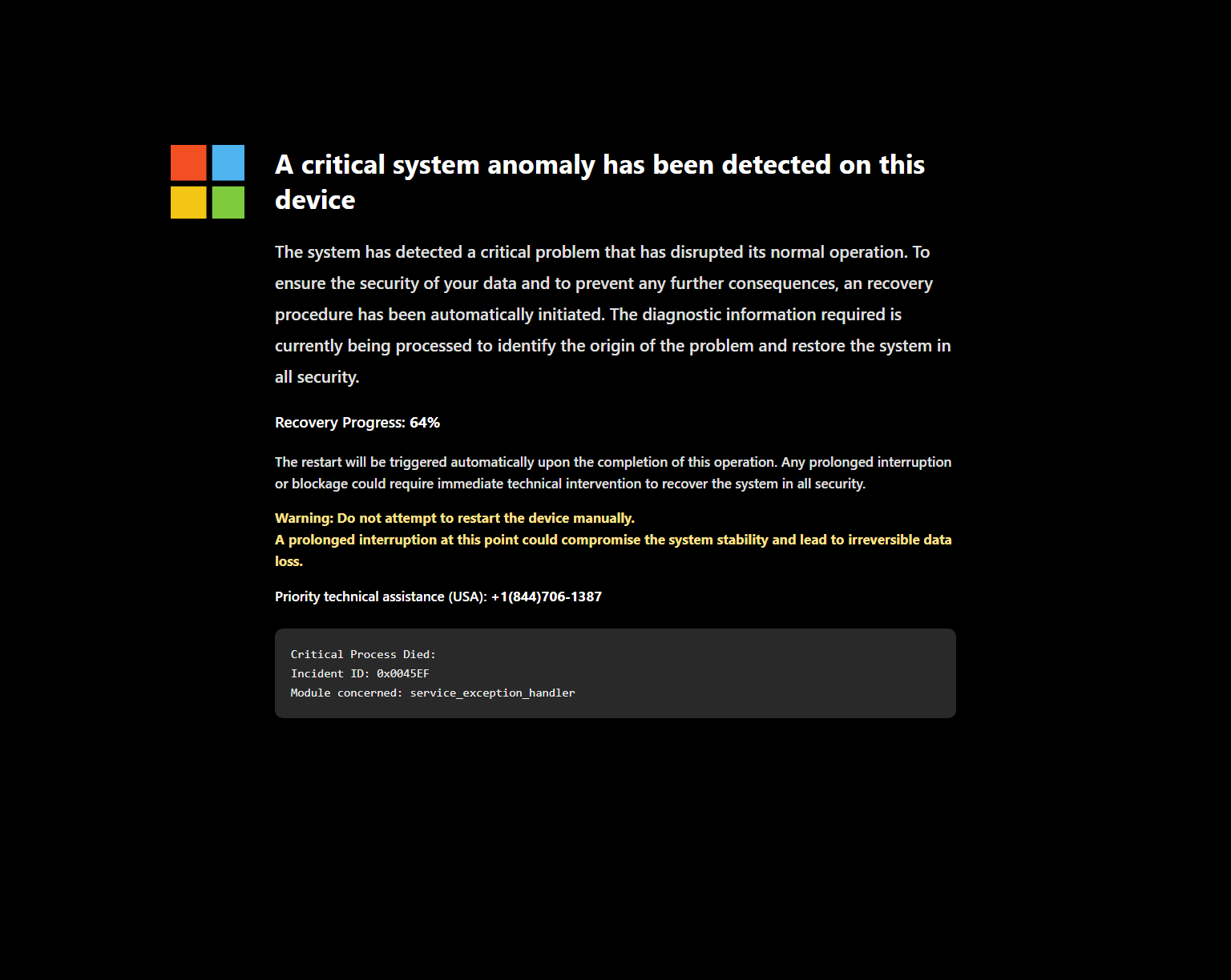 Contact support. Our engineer will guide you through the removal process over the phone. Your computer has been disabled. Defender SmartScreen now prevents unrecognized applications from appearing. Running this application may put your system at risk. Contact support +1(844)706-1387